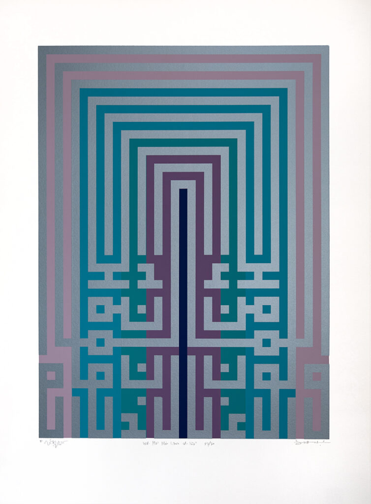 Kamal Boullata, ‘Al-Alif wa-l-Ya’ (“The alpha and the omega,” Ibn ‘Arabi), 1983. Silkscreen on paper, 52 x 52 cm (‘Geometry of Words’ series). Limited edition of 30