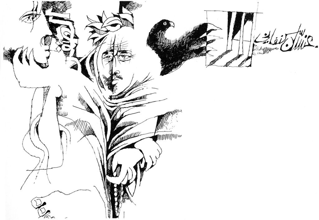 Two Men Early paintings & drawings   1980, board, drawing, Early paintings & drawings, Pen and ink Kamal Boullata, ‘Two Men’, 1980. For ‘The Falcon,’ a short story by Ghassan Kanafani. Pen and ink on board, 29 x 38 cm