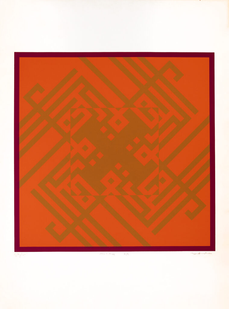 Kamal Boullata, ‘La Ana Illa Ana’ (“There is no I but I”, al-Hallaj), 1983. Silkscreen on paper, 60 x 40 cm (‘Geometry of Words’ series). Limited edition of 30